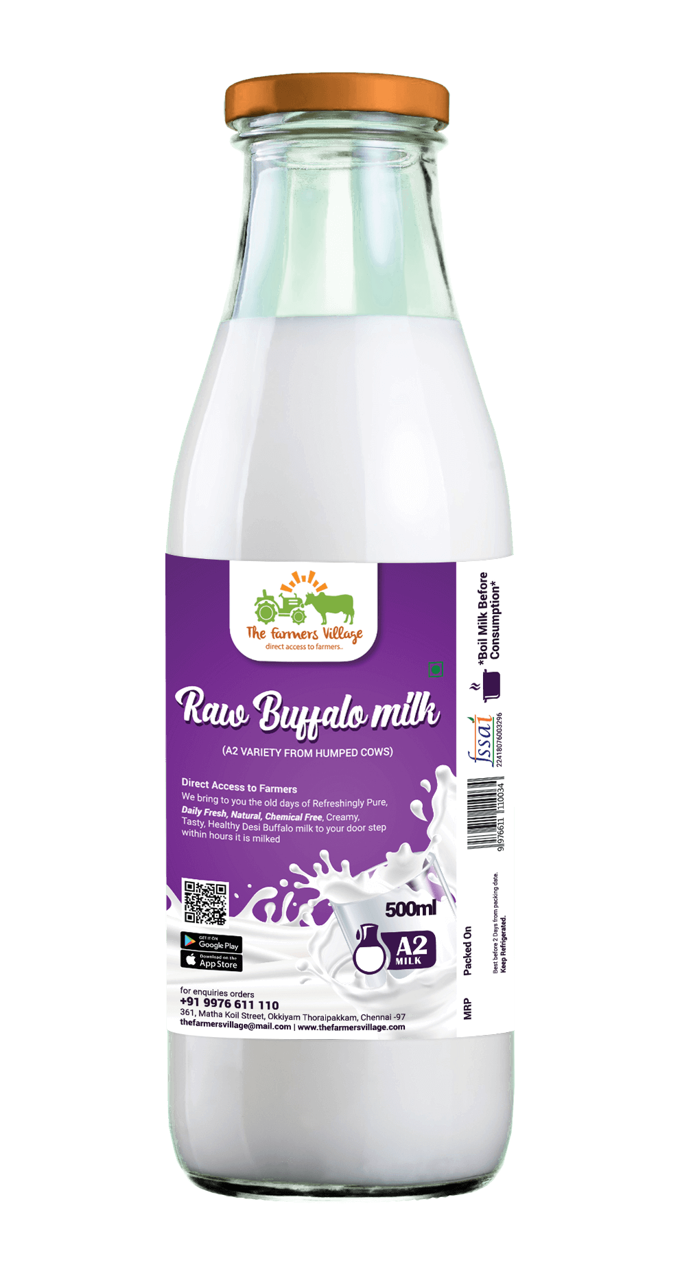 - Price: Rs.50 per 500 ml for Cow Milk and Rs. 52 per 500 ml for Buffalo Milk
