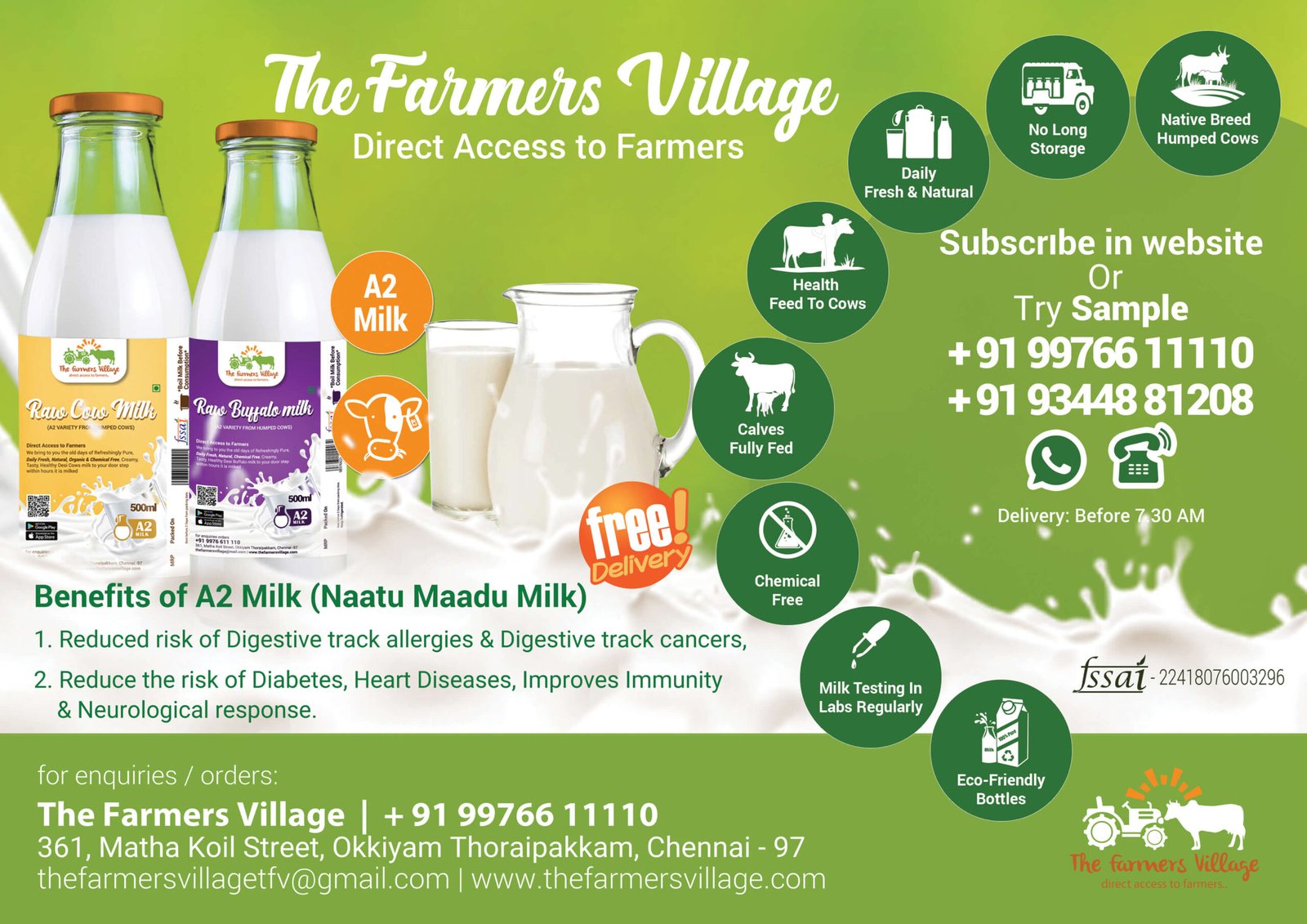 - Delivery: Free Delivery between 5.30 AM to 7.30 AM